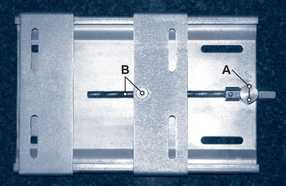 - Ölen Sie das Wellengewinde leicht ein, wo es in die Einstellplatte (B) passt.