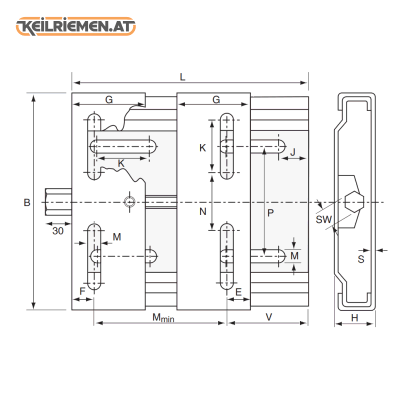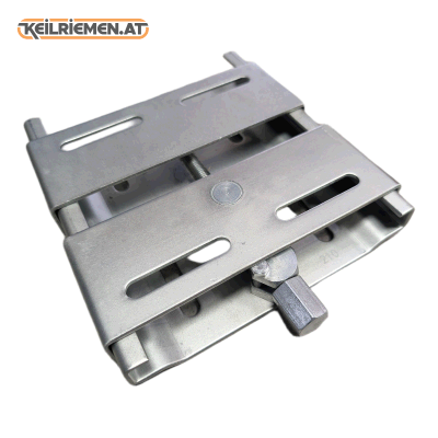 Die gepresste Abdeckplatte ist so konzipiert, dass sie über die Grundplatte gleitet, um Vibrationen und Geräusche zu verhindern und gleichzeitig die Kontinuität der Riemenspannung sicherzustellen. Die Riemen werden durch Einstellen einer einzigen Schraube gespannt. Der Motor ist mit der zweiteiligen Kopfplatte verschraubt, die eine Vielzahl von Motoren aufnehmen kann. Achsabstand und Riemenspannung können eingestellt werden, ohne dass die Motorbefestigungsschrauben gelöst werden müssen.