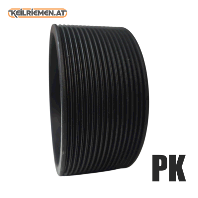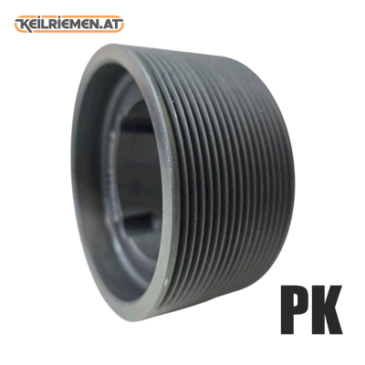 Die PK Poly-V Scheiben können für PK Keilrippenriemen verwendet werden. Der Rippenabstand beträgt 3,56 mm von Rippenmitte zu Rippenmitte. Die Riemenscheibe muss mindestens so viele Spuren haben wie die Anzahl der zu verwendenden Rippen (es können auch mehr verwendet werden).