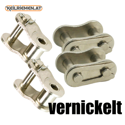 Unter diesem Menüpunkt finden Sie das komplette Sortiment an Steckglieder und Kröpfglieder für vernickelte Rollenketten. Die technischen Daten der Ketten finden Sie im Katalog unter der Rubrik „Dokumente zum Herunterladen“.
